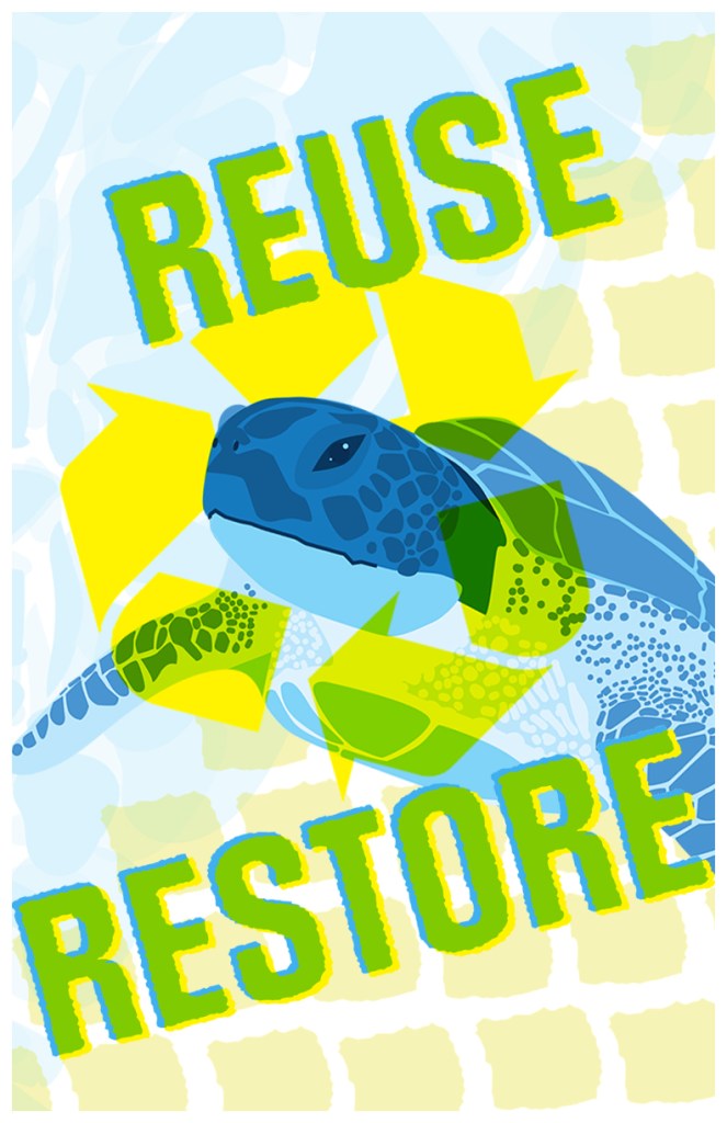Designed with purpose in Illustrator, “Reuse, Restore” promotes environmental conservation through minimalist yet impactful posters. Using a limited color palette, the posters convey a powerful message of recycling and restoration. By combining artistic elements with a compelling message, the project inspires viewers to take action and contribute to a sustainable future.